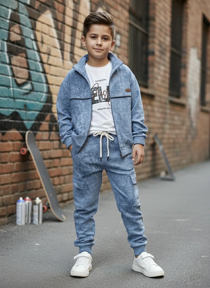 Hoci sú detské teplákové súpravy veľmi populárne vďaka ich praktickosti, v našom sortimente majú významné miesto aj detské teplákové trojkomplety, ktoré sa skladajú z troch kúskov oblečenia. Medzi obľúbené patria napríklad batikovaný teplákový trojkomplet v čiernej farbe, v ktorom chlapci budú vyzerať moderne a sebavedomo, alebo modely s jemnou batikou a minimalistickejším vzhľadom, ako teplákový trojkomplet v olivovej a modrej farbe.
