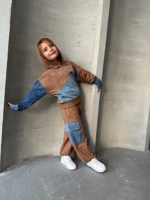 Dívčí bavlněný komplet JEANS DREAM #new25 – hnědý