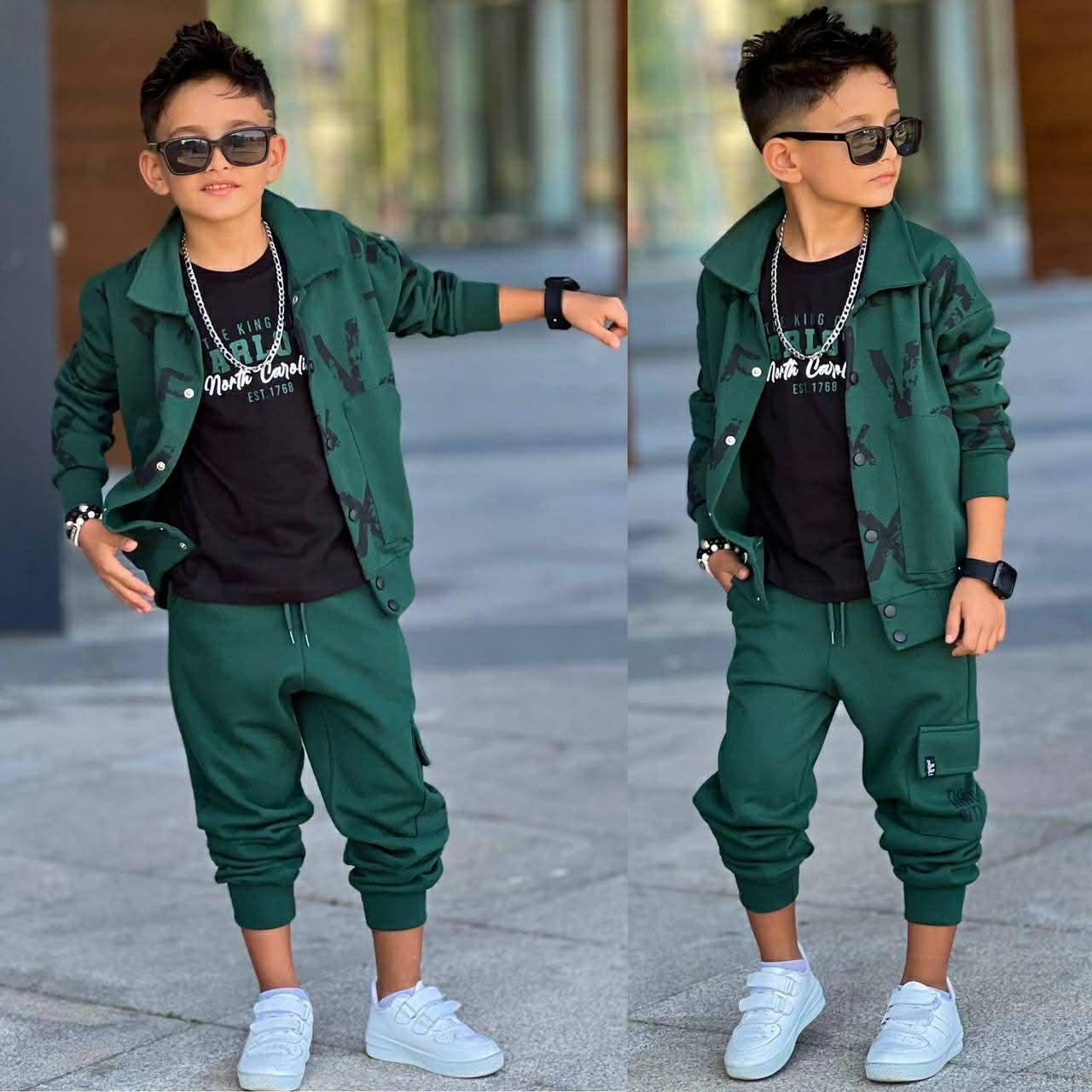 Stylová trojkombinace z vysoce kvalitního materiálu. Trojkomplet se skládá z prodloužené mikiny na zip, trička s potiskem a stylových tepláků. Mikina je na zádech zdobena potiskem. Tepláky mají boční kapsy, elastický pas a šňůrku na stažení, takže se dají pěkně přizpůsobit. Spodní část tepláků je zakončena patentkou.