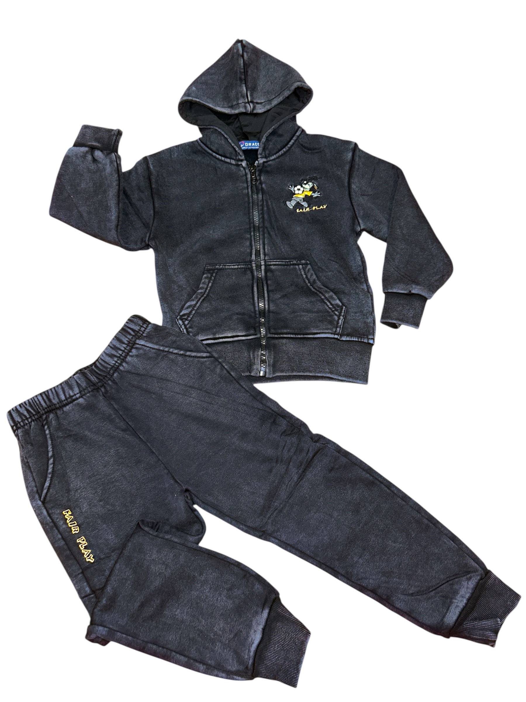 Stylová trojkombinace z vysoce kvalitního materiálu. Trojkomplet se skládá z prodloužené mikiny na zip, trička s potiskem a stylových tepláků. Mikina je na zádech zdobena potiskem. Tepláky mají boční kapsy, elastický pas a šňůrku na stažení, takže se dají pěkně přizpůsobit. Spodní část tepláků je zakončena patentkou.
