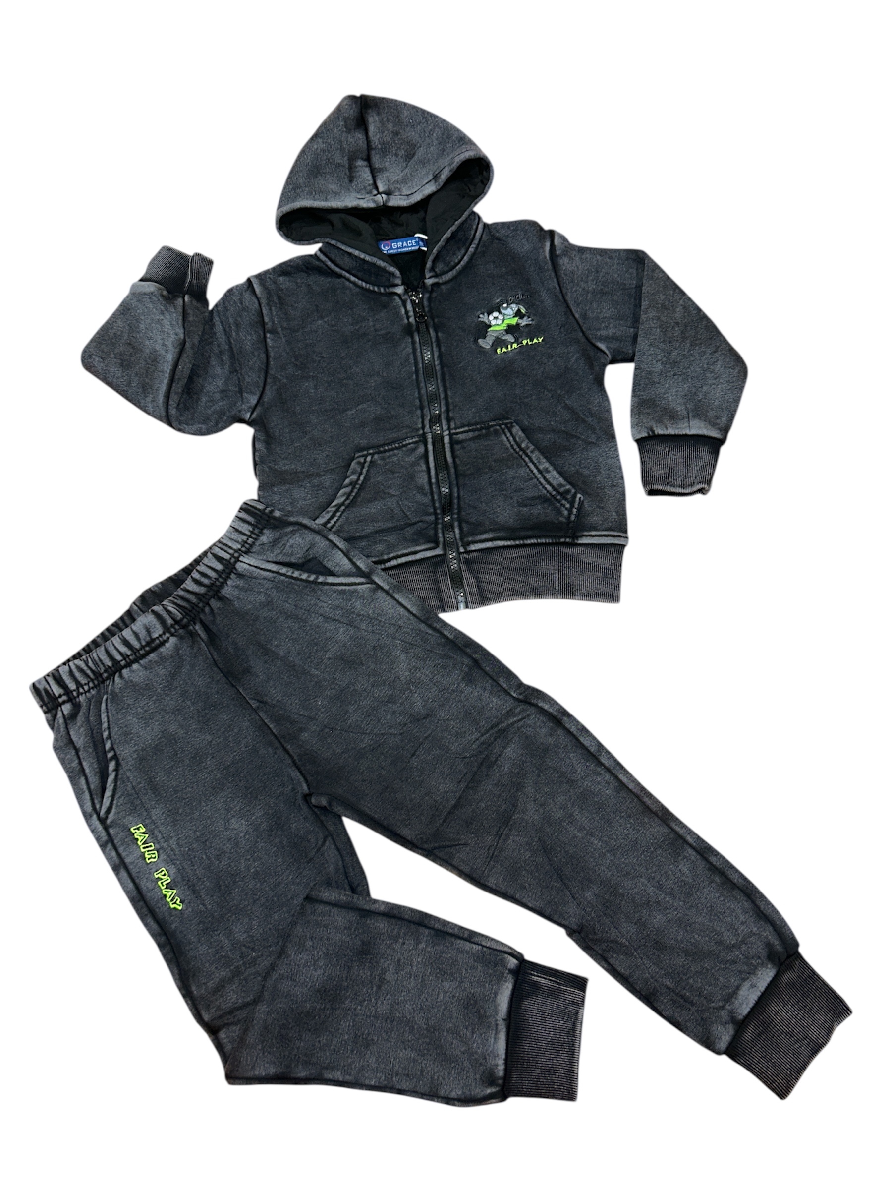 Stylová trojkombinace z vysoce kvalitního materiálu. Trojkomplet se skládá z prodloužené mikiny na zip, trička s potiskem a stylových tepláků. Mikina je na zádech zdobena potiskem. Tepláky mají boční kapsy, elastický pas a šňůrku na stažení, takže se dají pěkně přizpůsobit. Spodní část tepláků je zakončena patentkou.