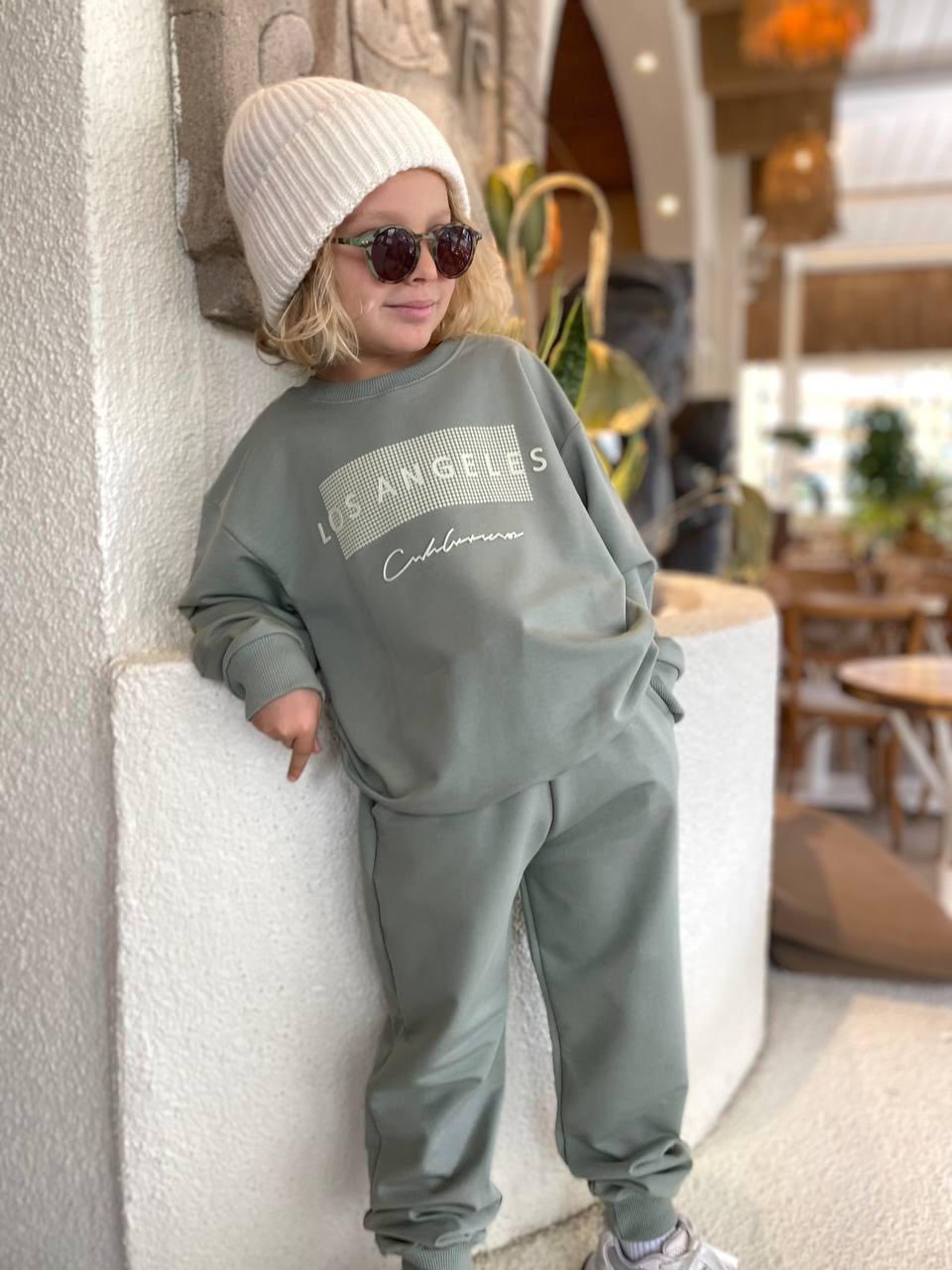 Stylová trojkombinace z vysoce kvalitního materiálu. Trojkomplet se skládá z prodloužené mikiny na zip, trička s potiskem a stylových tepláků. Mikina je na zádech zdobena potiskem. Tepláky mají boční kapsy, elastický pas a šňůrku na stažení, takže se dají pěkně přizpůsobit. Spodní část tepláků je zakončena patentkou.