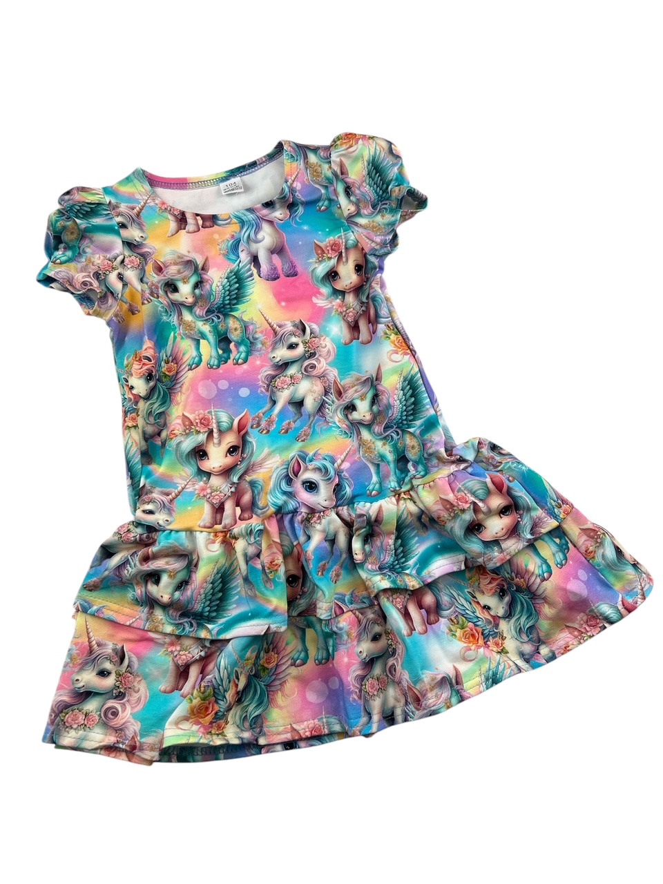 Krásne rozprávkové šaty UNICORN vyrobené z kvalitnej bavlny s potlačou. Šaty sú krásne prepracované.