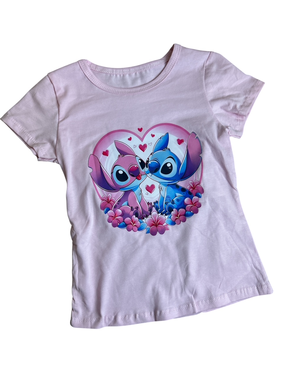 Štýlové bavlnené dievčenské tričko s potlačou Lilo&Stitch vyrobený z kvalitného materiálu.