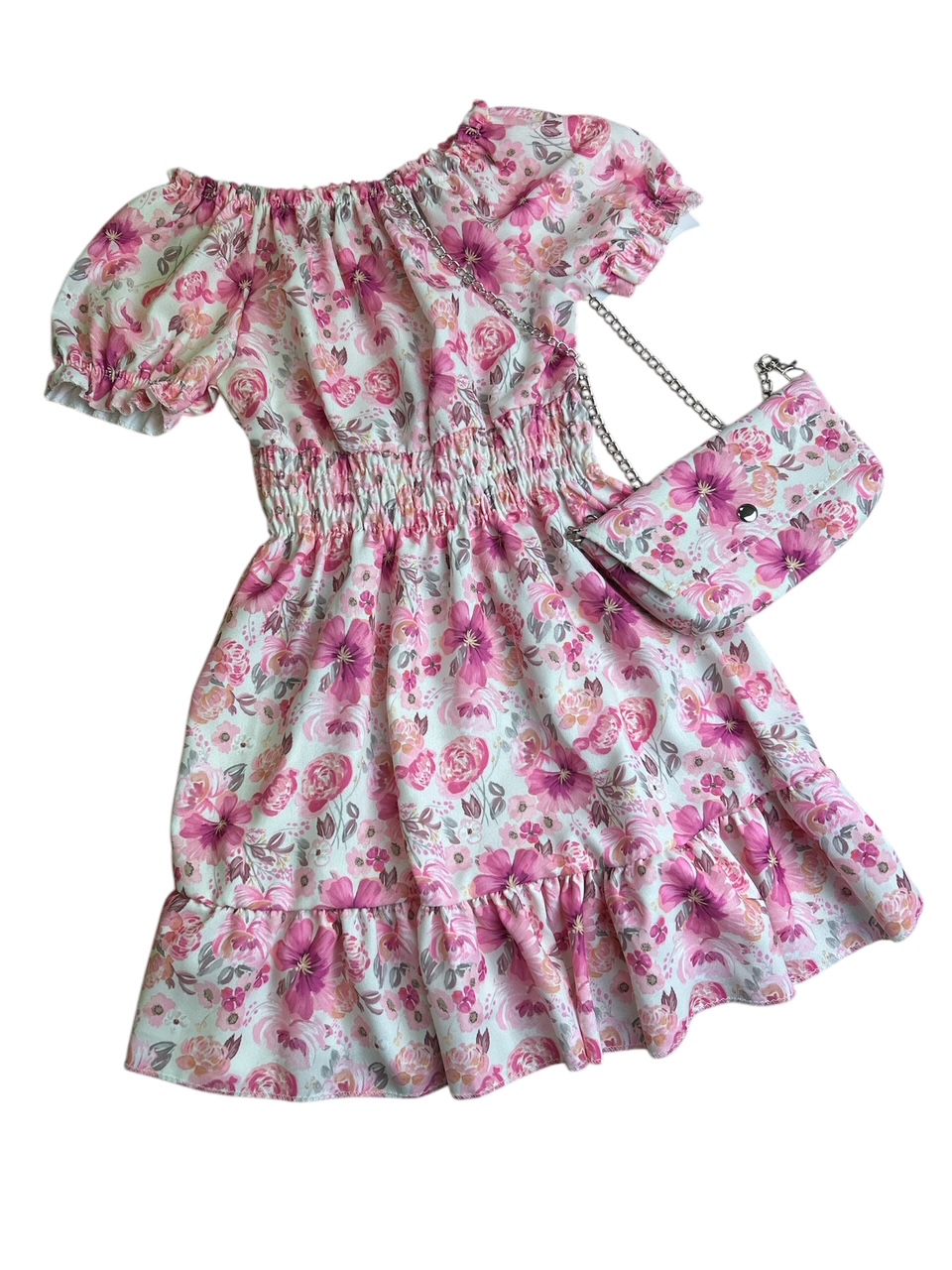 Letne šaty pink rose s kabelkou #new25