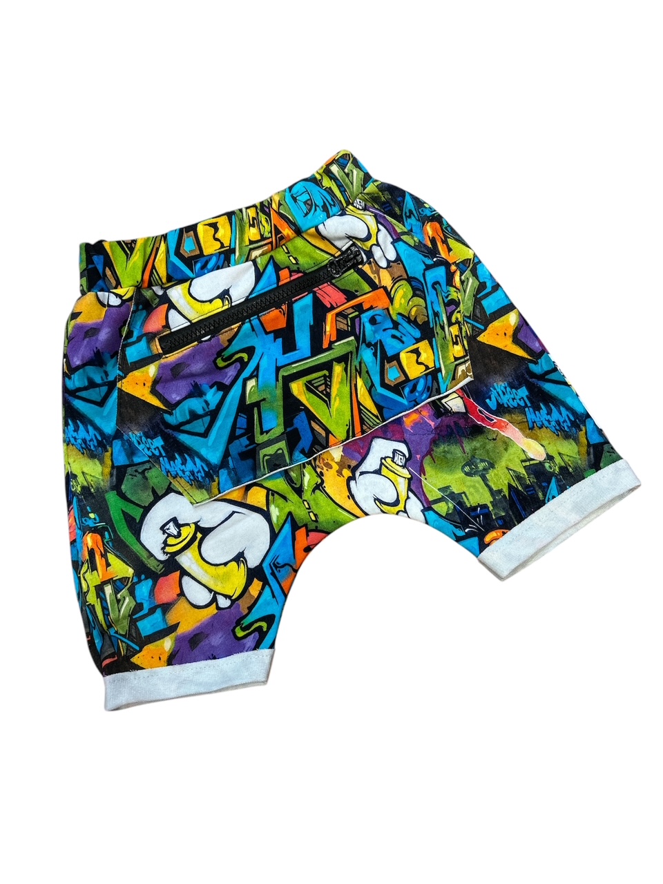 Kvalitné štýlové pudlové kraťasy. V prednej časti vrecko so zipsom. Pás je na gumičku. Kraťasy sú vyrobené z kvalitnej bavlny s limitovanou potlačou.