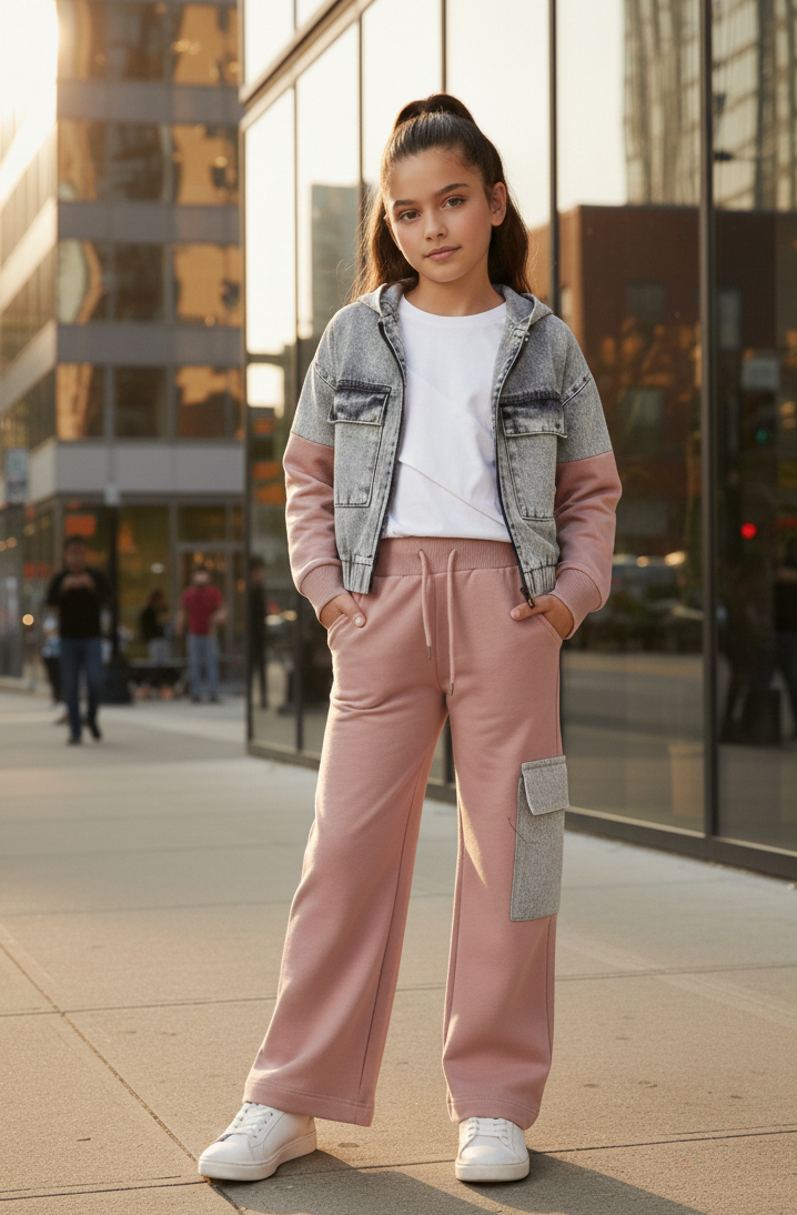Hľadáte pre svoju malú parádnicu outfit, ktorý v sebe spája drsný mestský štýl s jemnou dievčenskou eleganciou? Náš 3-komplet SURPRISE v kombinácii modrej rifľoviny a pudrovo ružovej teplákoviny je absolútnym hitom sezóny. Tento set je navrhnutý pre dievčatá, ktoré chcú vyzerať trendy a zároveň sa cítiť maximálne pohodlne počas celého dňa.