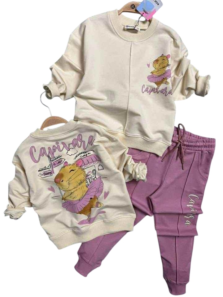 Tepláková bavlnená súprava CAPIVARA – bežovo-pudrová