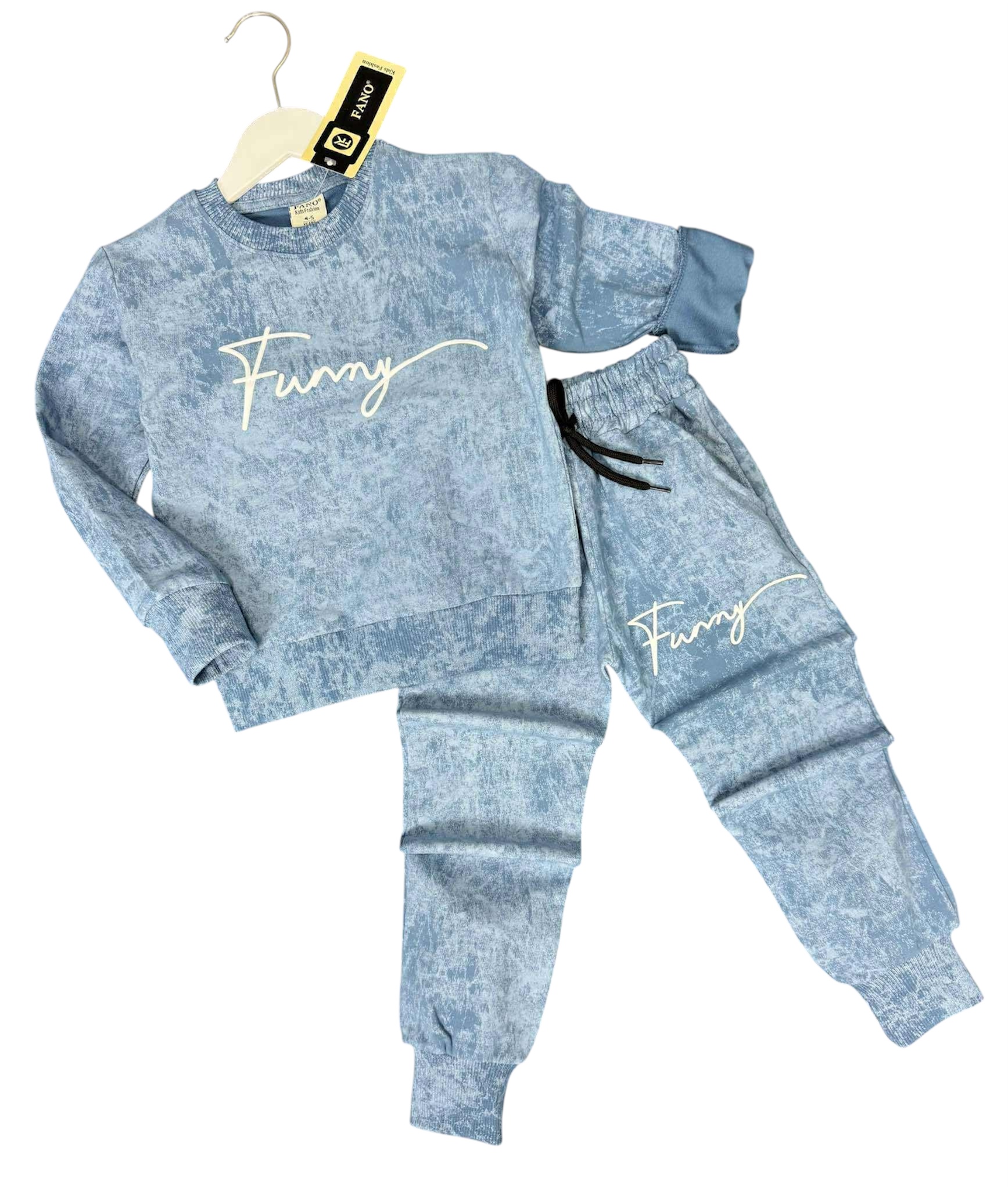 Štýlový komplet vyrobený z na dotyk príjemnej a kvalitnej bavlny. Komplet sa skladá z mikiny s nápisom FUNNY a krásnych teplákov s nápisom, ktoré sú ukončené patentom. Tepláky majú pas na gumičku aj šnúrku, takže sa dajú pekne regulovať.