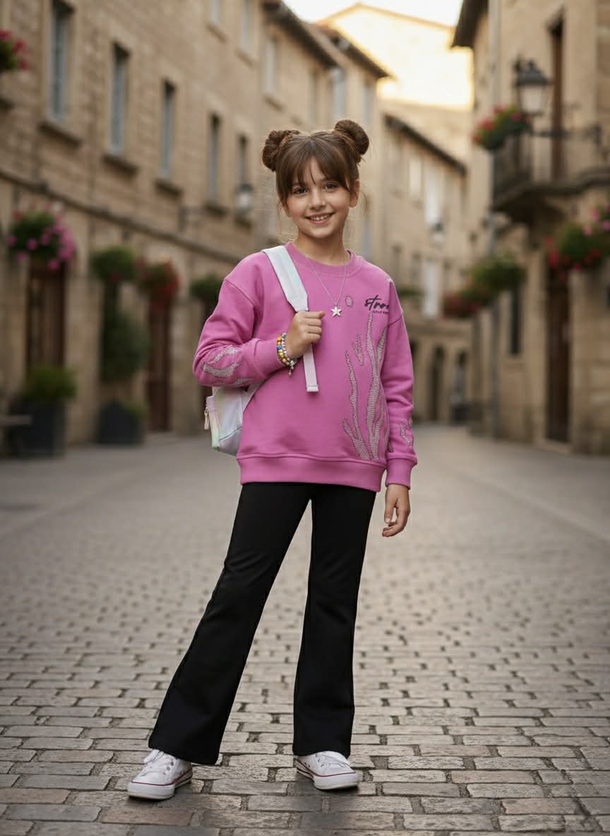 • Univerzálnosť: Cyklámenovú mikinu a čierne nohavice môžete nosiť ako zladený komplet, alebo ich ľahko kombinovať s inými kúskami v šatníku.