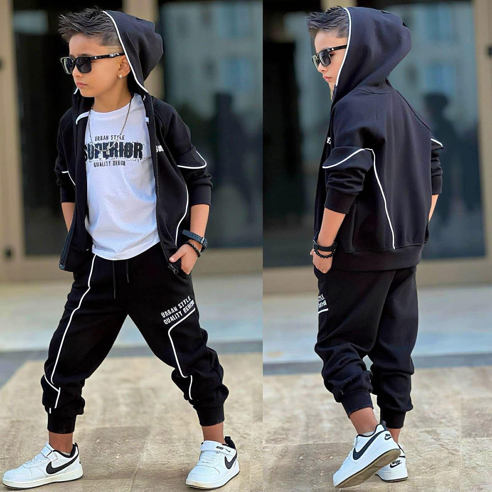 Doprajte svojmu synovi outfit, v ktorom zažiari! Chlapčenský 3-komplet SUPERIOR v elegantnej čiernej farbe predstavuje dokonalú rovnováhu medzi športovým pohodlím a luxusným „urban“ štýlom. Tento set je navrhnutý pre sebavedomých chlapcov, ktorí milujú pohyb, ale zároveň chcú vyzerať skvele v škole či v meste.