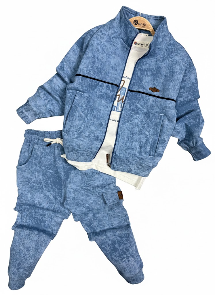 Hľadáte pre svojho syna outfit, ktorý v sebe spája absolútne pohodlie a moderný mestský štýl? Náš chlapčenský 3-komplet RELAX v unikátnom modrom mramorovom prevedení je ideálnou voľbou pre každého mladého muža, ktorý chce vyzerať skvele v škole, v meste aj na skateboarde.