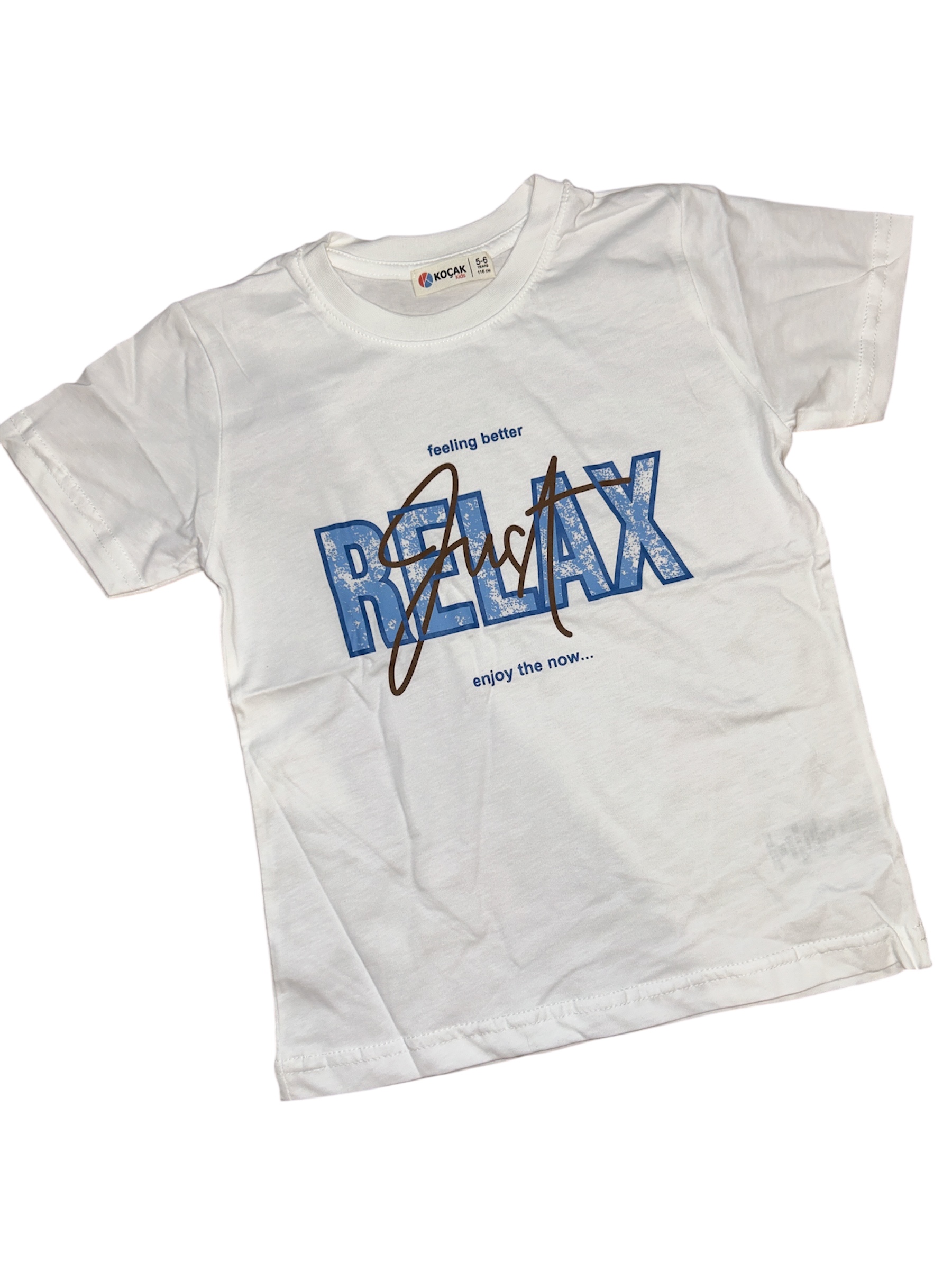 Biele bavlnené tričko: Súčasťou setu je tričko s originálnou potlačou, ktoré perfektne kontrastuje s modrou súpravou a je vyrobené z priedušného materiálu.