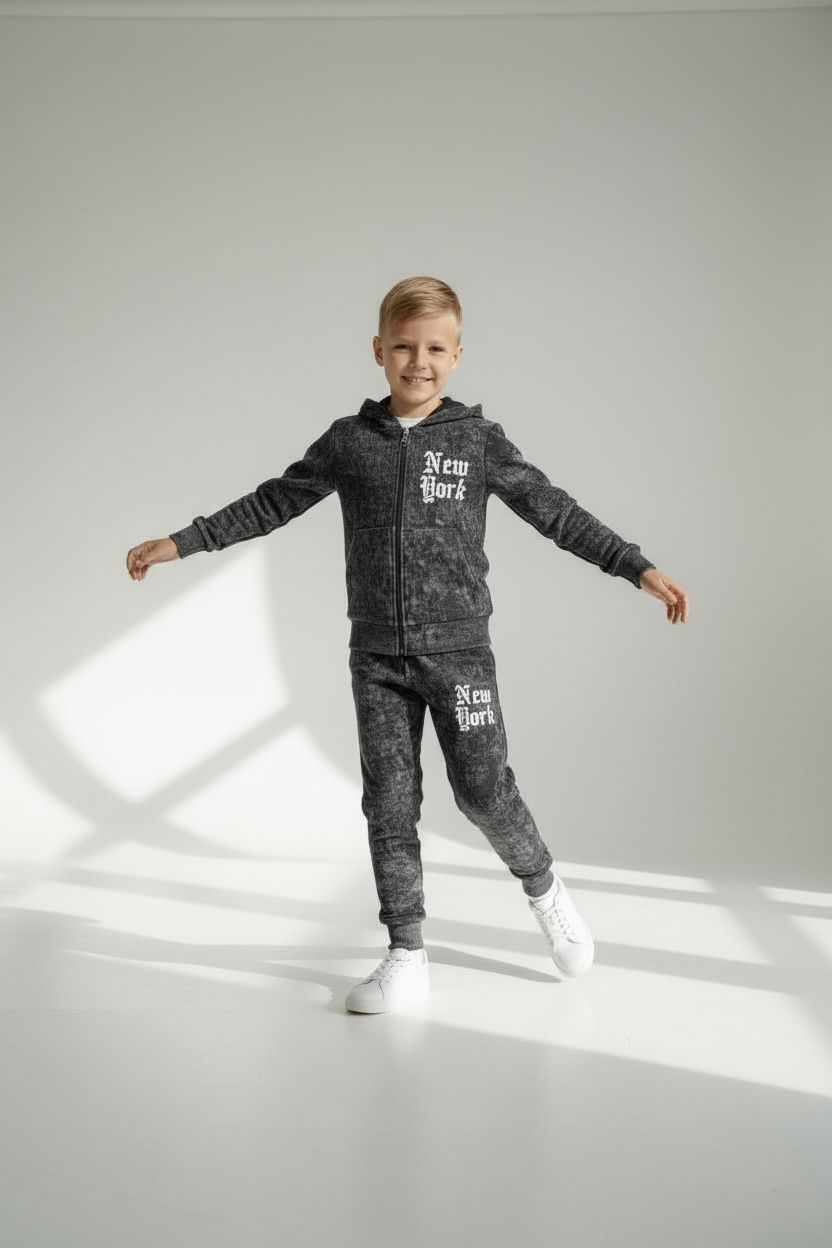 Hľadáte štýlový a praktický outfit? Detský 3-komplet New York obsahuje mikinu na zips, pohodlné tepláky a biele tričko. Kvalitná bavlna s moderným batikovaným vzorom (acid wash) zaručí štýl aj pohodlie. Objednajte tento bestseller ešte dnes!