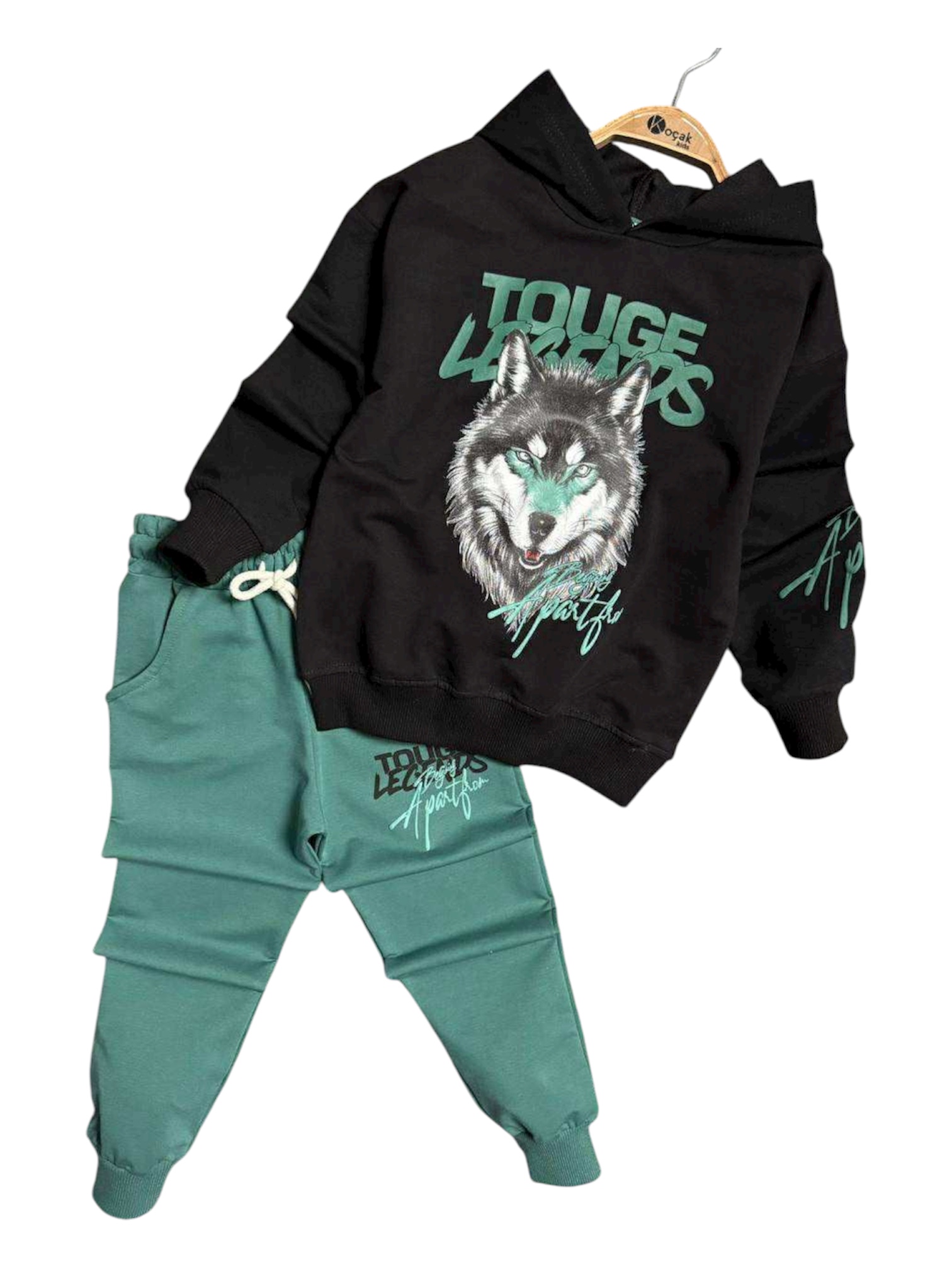 Teplákový bavlnený komplet LEGENDS Wolf – zeleno-čierny