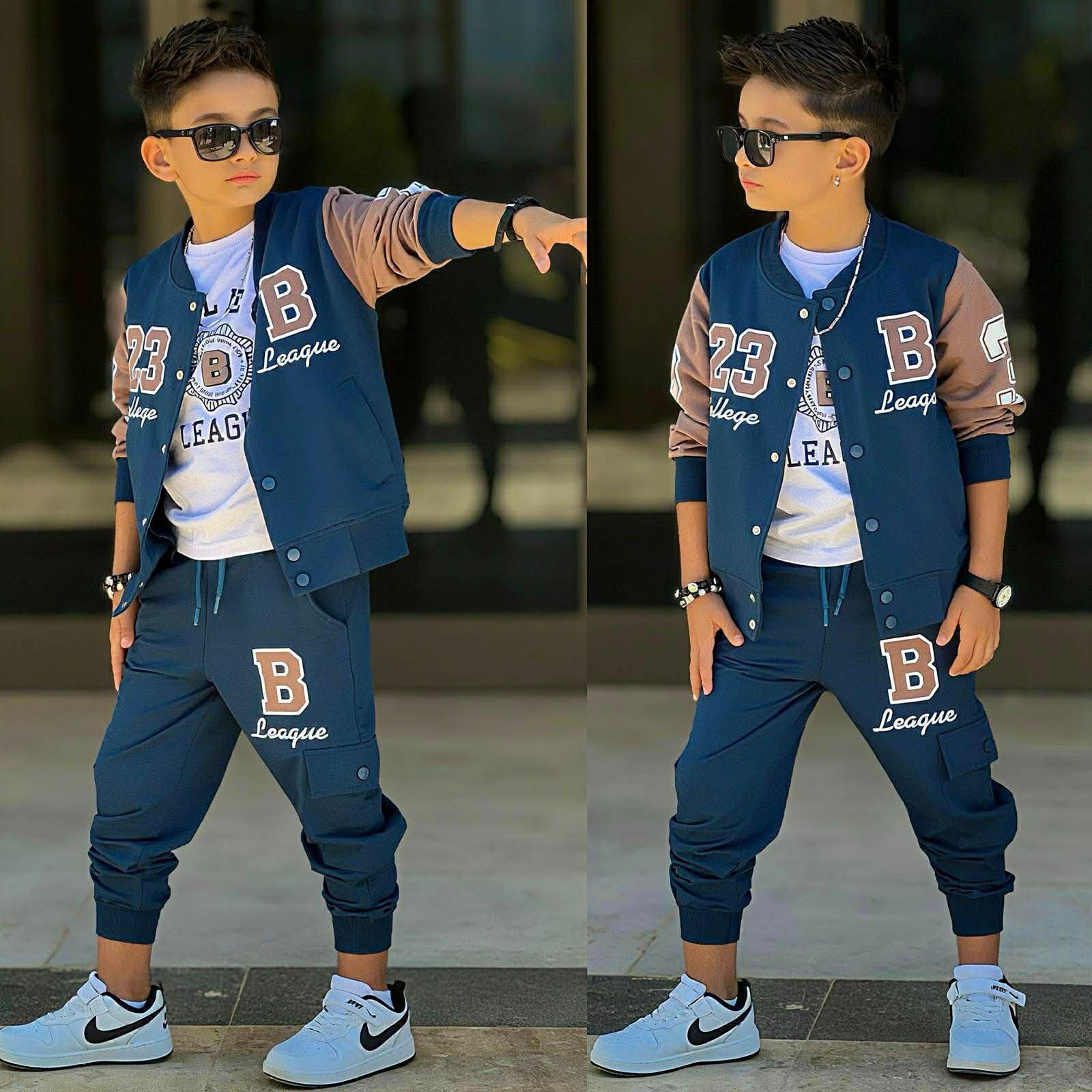 Pripravte svojho malého šampióna na štýlovú sezónu s naším exkluzívnym trojkompletom B LEAGUE. Tento set v hlbokej kráľovskej modrej farbe je stelesnením moderného „college“ štýlu, ktorý dominuje detskej móde. Je navrhnutý tak, aby poskytoval maximálne pohodlie pri hre a zároveň pôsobil reprezentatívne v škole či v meste.
