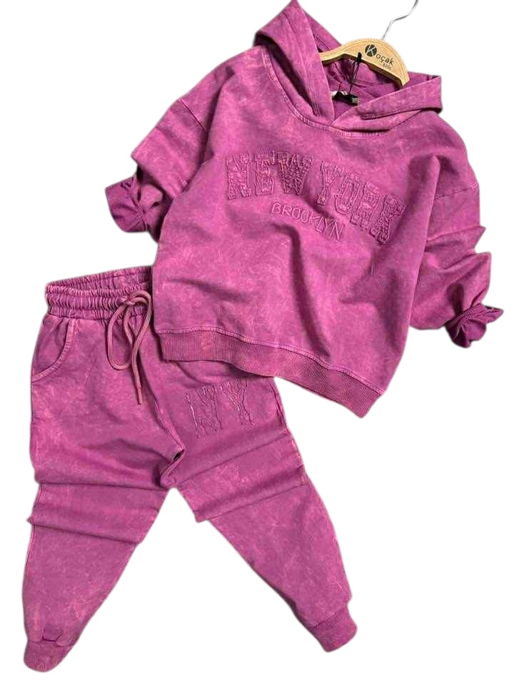 Teplákový JEANS BATIK komplet NY Brooklyn s kapucňou – ružový