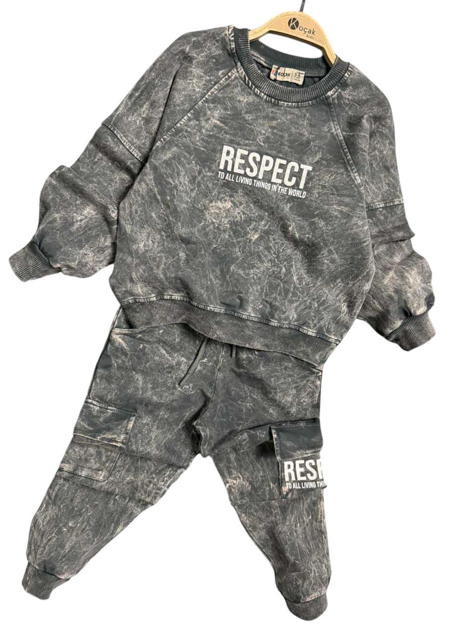 Štýlový a veľmi kvalitný BATIK komplet. Batikovaný komplet sa skladá z bomberovej mikiny a potlačou RESPECT na prednej strane. Na rukávoch a spodku ukončená patentom a štýlových teplákov, ktoré majú na prednej strane potlač RESPECT. Tepláky majú bočné vrecká aj predné vrecko, pás na gumičku aj šnúrku, takže sa dá pekne regulovať. Tepláky sú ukončené patentom.